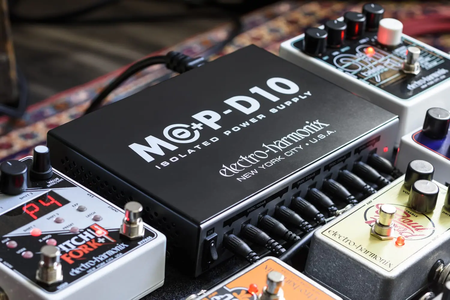 O MOP-D10 é uma fonte de alimentação multi-saída desenvolvida pelos engenheiros da EHX para oferecer operação silenciosa aos seus pedais. Ele conta com 10 saídas isoladas de 9VDC, que atendem às necessidades de energia mais comuns: