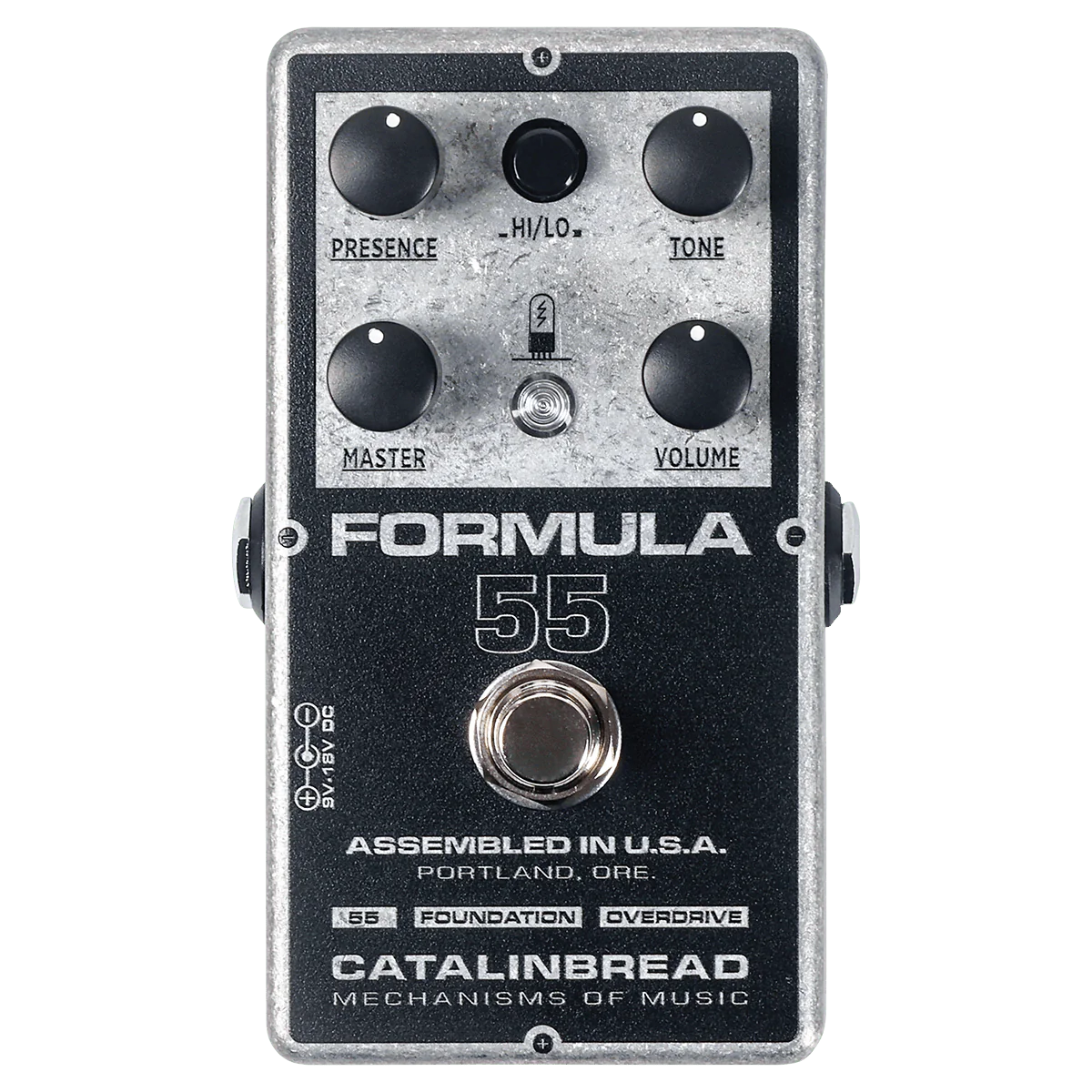 O Formula No. 55 é um Foundation Overdrive que reproduz, com detalhes exatos, a seção de pré-amplificação do clássico Fender™ tweed 5E3 Deluxe, usando um caminho de sinal totalmente discreto baseado em JFETs. Os controles de Volume e Tone replicam, peça por peça, o circuito do 5E3, proporcionando uma resposta autêntica de amplificador tweed.