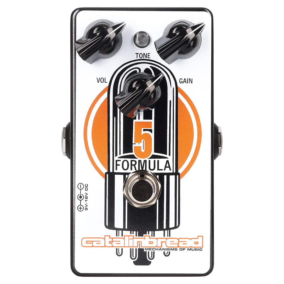 Desenvolvido com circuitos que simulam válvulas reais, o Formula 5 entrega uma boa dose de ganho logo de cara, interagindo de forma fantástica com os controles da sua guitarra, remetendo à época em que nem existiam tantos pedais — era apenas um músico, uma guitarra e um amplificador.