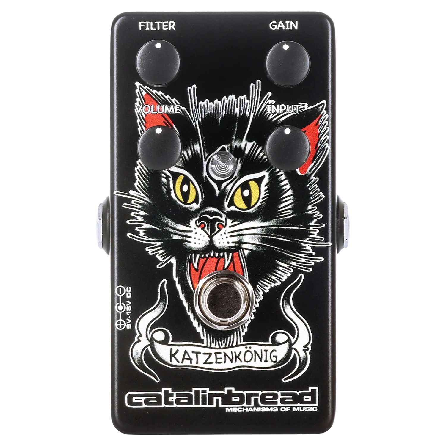 O Katzenkönig ama tanto humbuckers quanto single coils, seu amp no talo ou super limpo. A primeira metade do circuito é baseada no Tone Bender MKII, amplamente considerado o mais desejado dos Tone Benders. No original, um transistor de germânio deixa o sinal alto; um segundo transistor o deixa muito alto, e um terceiro o deixa ridiculamente alto.