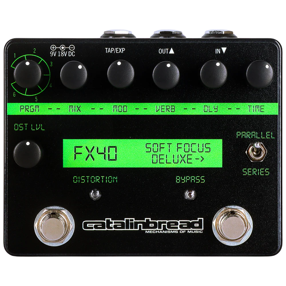 O modelo Deluxe adiciona a função de delay ausente do patch original do FX500, oferecendo controle preciso de cada parâmetro em seis programas diferentes. Mergulhe em uma vasta gama de texturas e paisagens sonoras shoegaze, agora com um circuito de distorção integrado e acionável por footswitch, que pode operar em série ou em paralelo com o patch Soft Focus.