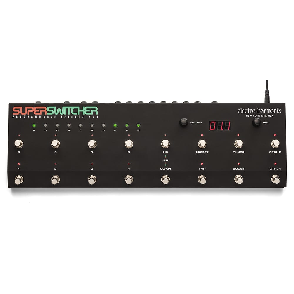 O EHX Super Switcher é a solução definitiva para guitarristas cansados de fazer “sapateado” no pedalboard. Ele coloca todos os seus pedais na linha de frente e permite controlá-los com o simples toque de um botão, trazendo total praticidade no palco ou estúdio.