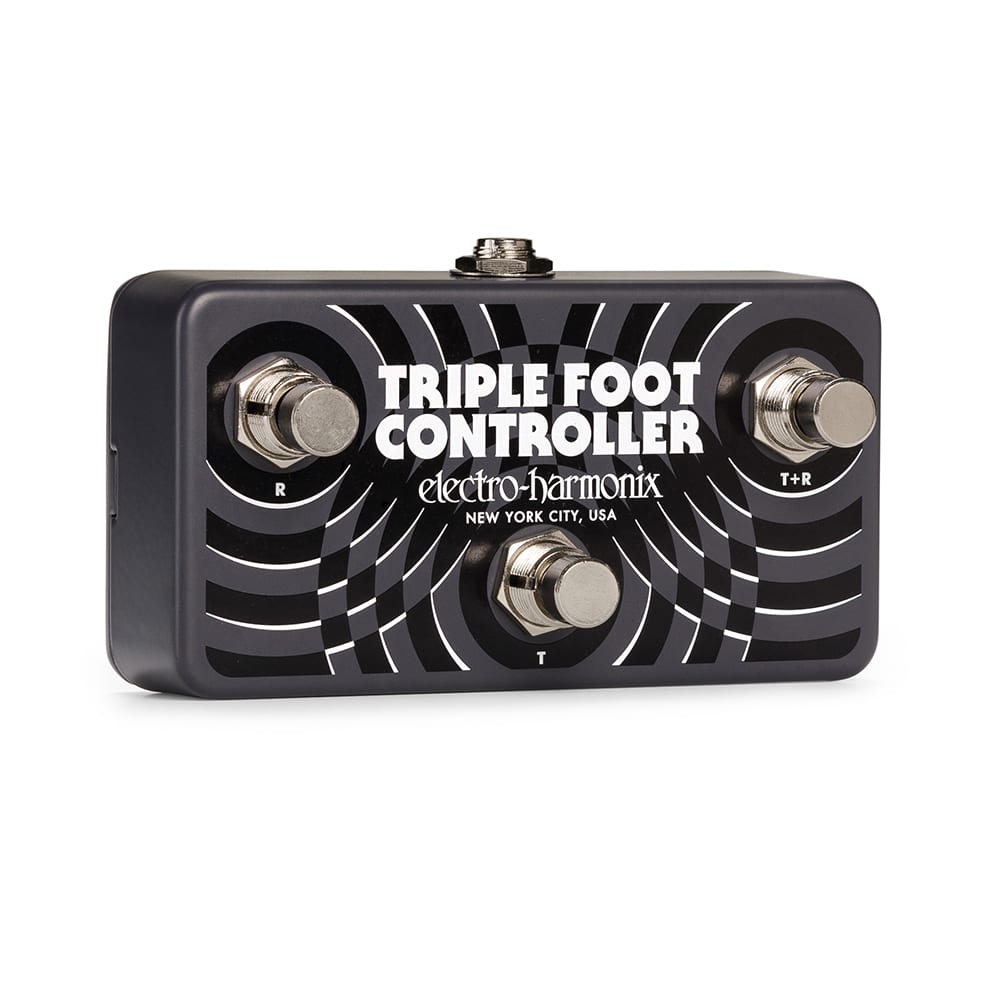 O EHX Triple Foot Controller oferece controle remoto de funções em pedais que são equipados com uma entrada para controle por footswitch externo. Dependendo do pedal ao qual está conectado, o Triple Foot Controller pode controlar tarefas como definir o tap tempo, alternar entre programas, selecionar modos e muito mais. Ele funciona com pedais da Electro-Harmonix, assim como com os fabricados por outras marcas.